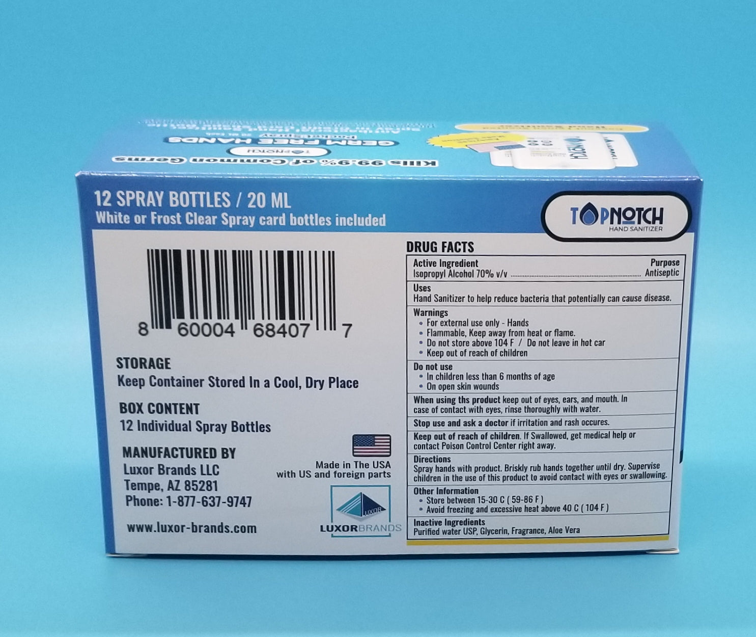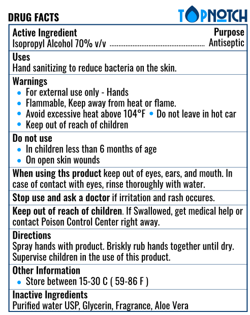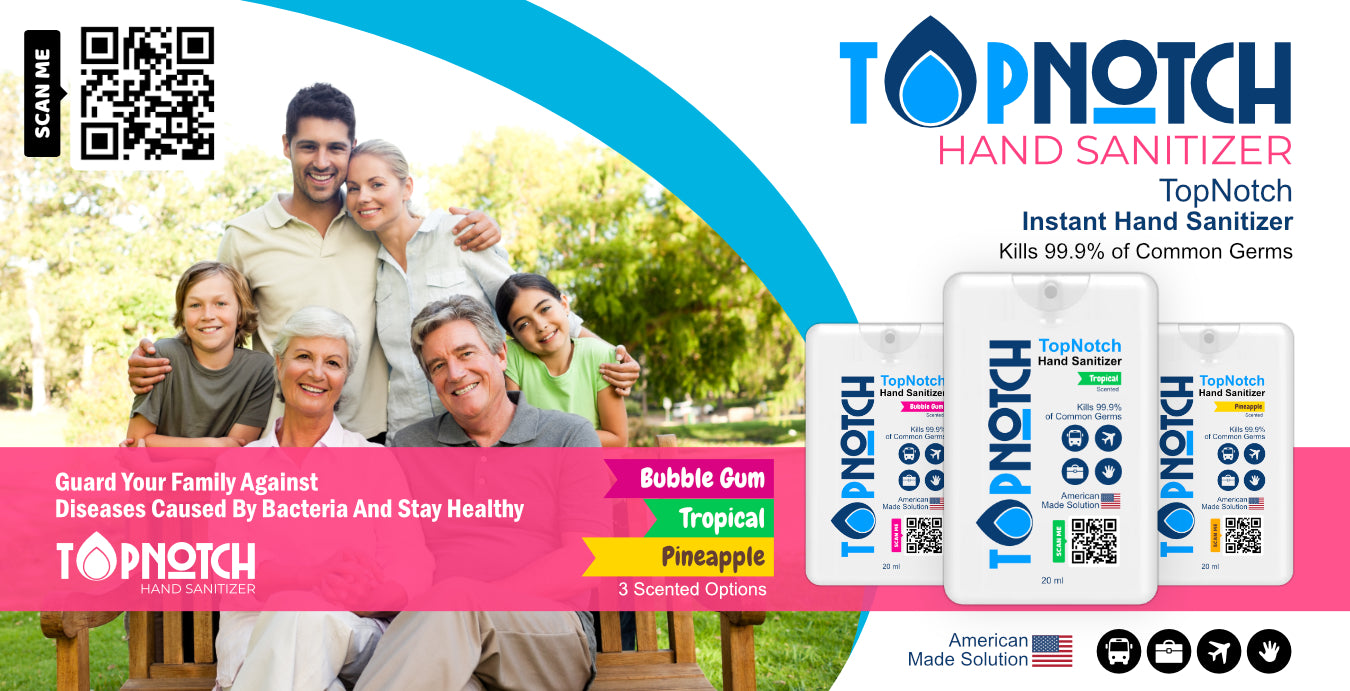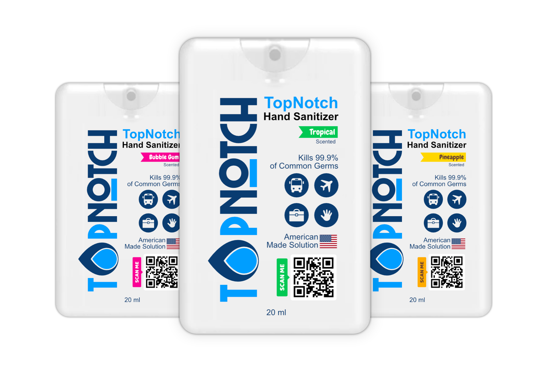 Unlike traditional gel sanitizers, TopNotch Hand Sanitizer can also be used as an effective sterilizing spray for ATM's, dining tables, hotel remotes and other high risk germ objects.